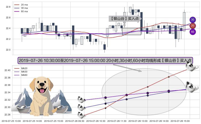 形态多维评估: ⚀ 2019-07-26 11:30:00-小时至2019-07-26 15:00:00-小时显现 20小时-30小时-60小时均线 【银山谷】买入点 看多信号,后市看涨,买入