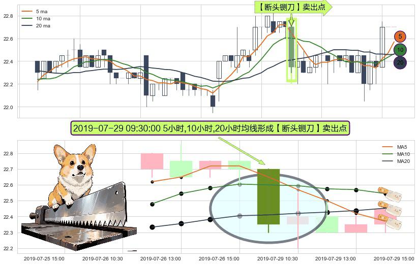形态多维评估: ⚀ 2019-07-29 09:30:00小时显现 5小时-10小时-20小时均线 【断头铡刀】卖出点 看空信号,后市看跌,卖出