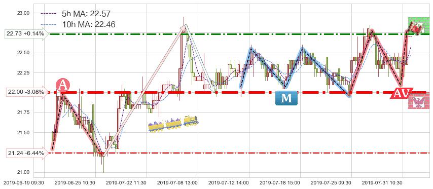 ♘ 阻力价格位22.73,可信任强度59.09%,距离最后交易2019-07-31 15:00形成的收盘价格22.70相差 +0.14%