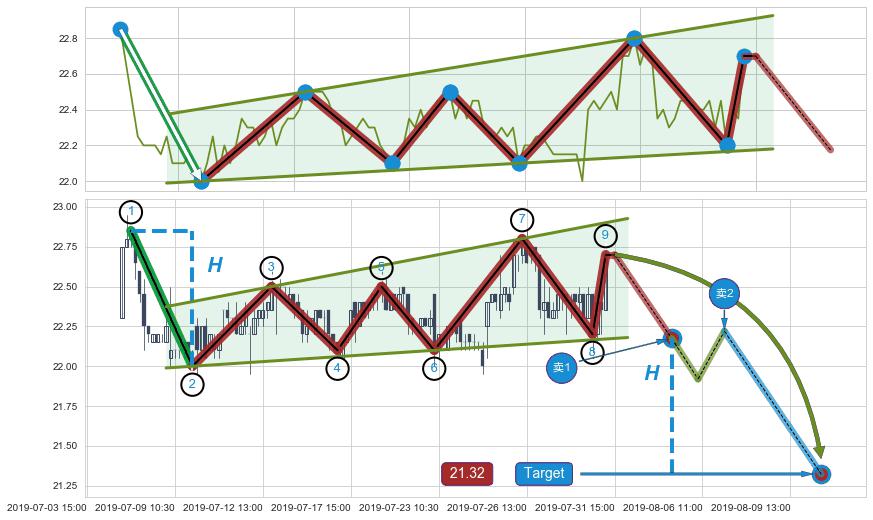 ➢ 【仅预测突破】最后价格:22.70与预测突破价格:22.17→【空间较大】后续最小【整理】第一目标价格→(08-12:14: 21.32 )