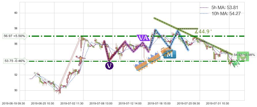 ♘ 阻力价格位56.97,可信任强度84.75%,距离最后交易2019-07-31 15:00形成的收盘价格54.00相差 +5.50%