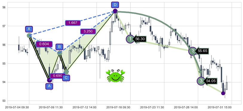 ➣ 已完成【螃蟹】形态起点X: 07-04:09, 终点D: 07-16:13, 共52交易小时