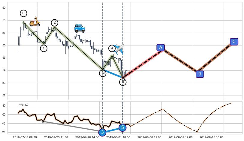 ➢ 谐波价格A点比C点低 ⤵,【RSI】指标A点比C点高 ⤴️