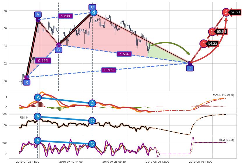 ➣ D点拟合预测价格52.01,距离最后交易收盘价格54.00相差 -3.68%