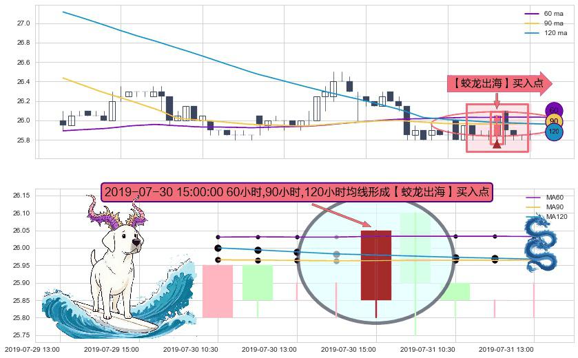 ⚀ 2019-07-30 15:00:00小时显现 60小时-90小时-120小时均线 【蛟龙出海】买入点 看多信号,后市看涨,买入