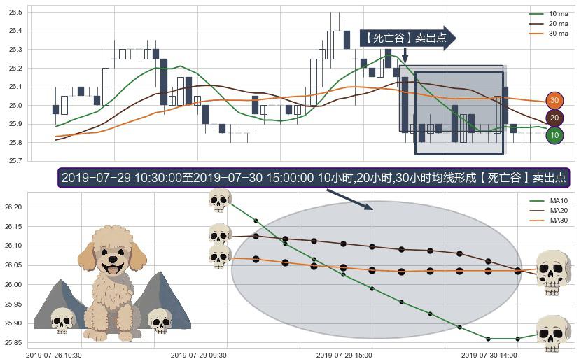 ⚀ 2019-07-29 11:30:00-小时至2019-07-30 15:00:00-小时显现 10小时-20小时-30小时均线 【死亡谷】卖出点 看空信号,后市看跌,卖出