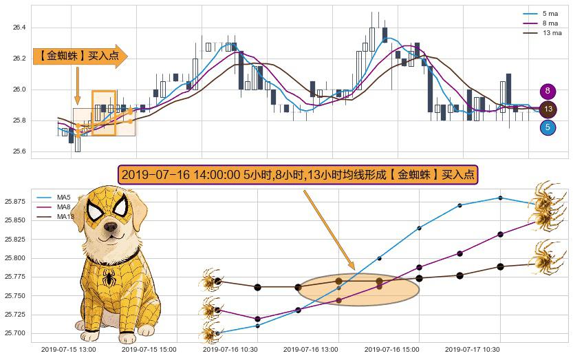 ⚀ 2019-07-16 14:00:00小时显现 5小时-8小时-13小时均线 【金蜘蛛】买入点 看多信号,后市看涨,买入