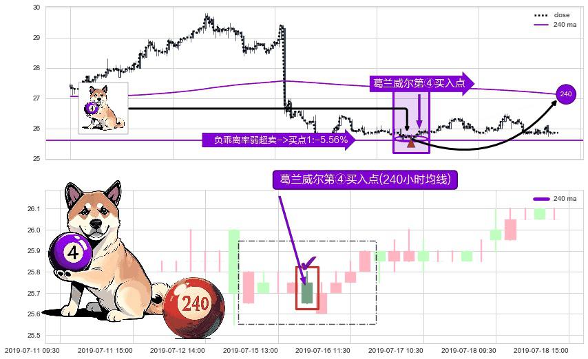 ⚀ 2019-07-15 15:00:00-小时显现 葛兰威尔均线 240小时均线 第④买入点 下降趋势均值回复的短线反弹信号,后市看涨,买进信号