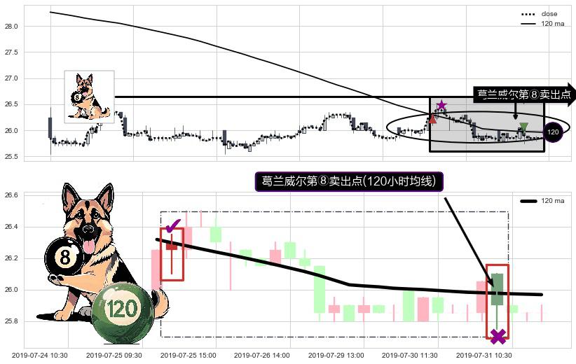 ⚀ 2019-07-31 09:30:00-小时显现 葛兰威尔均线 120小时均线 第⑧卖出点 下降趋势的中继信号,后市看跌,卖出信号