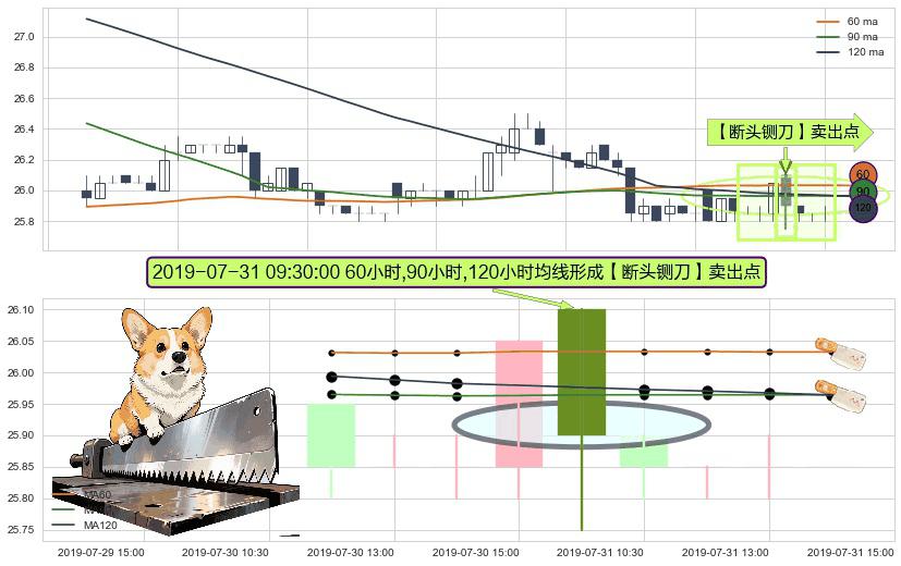 ⚀ 2019-07-31 09:30:00小时显现 60小时-90小时-120小时均线 【断头铡刀】卖出点 看空信号,后市看跌,卖出