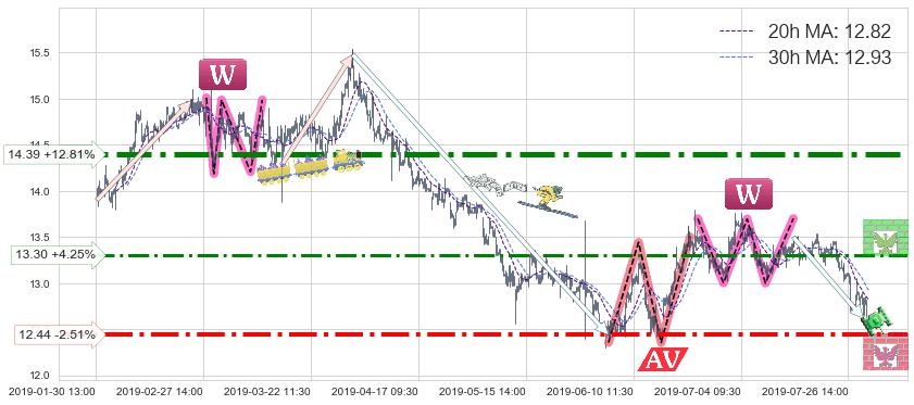 ♘ 阻力价格位13.30,可信任强度64.14%,距离最后交易2019-07-31 15:00形成的收盘价格12.76相差 +4.25%