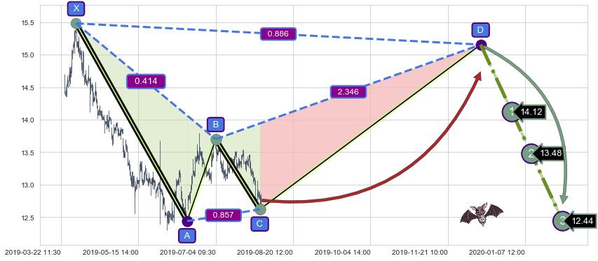 ➣ 未完成【蝙蝠】形态起点X: 04-01:15, 已到达C点: 07-31:09, 预测最终D点: 12-11:11, 共1043交易小时