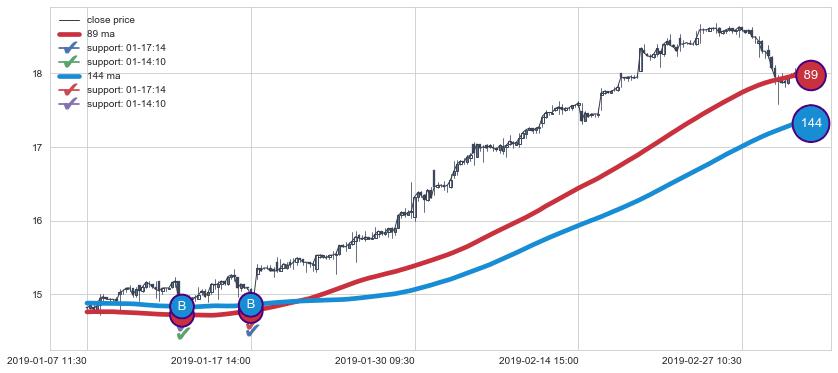上涨趋势01-07 11:30-03-01 15:00,均线144, 89确认关键支撑2处