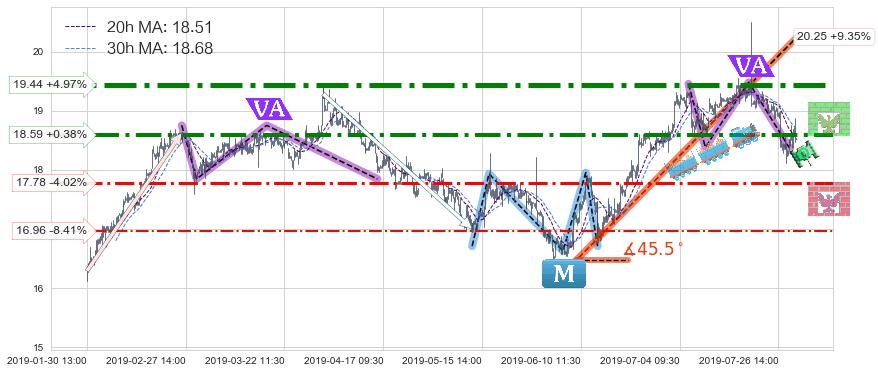 ♘ 阻力价格位19.44,可信任强度91.83%,距离最后交易2019-07-31 15:00形成的收盘价格18.52相差 +4.97%