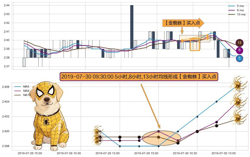 ⚀ 2019-07-30 09:30:00小时显现 5小时-8小时-13小时均线 【金蜘蛛】买入点 看多信号,后市看涨,买入