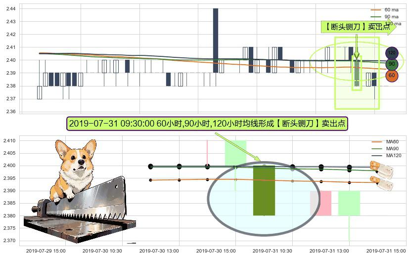 ⚀ 2019-07-31 09:30:00小时显现 60小时-90小时-120小时均线 【断头铡刀】卖出点 看空信号,后市看跌,卖出