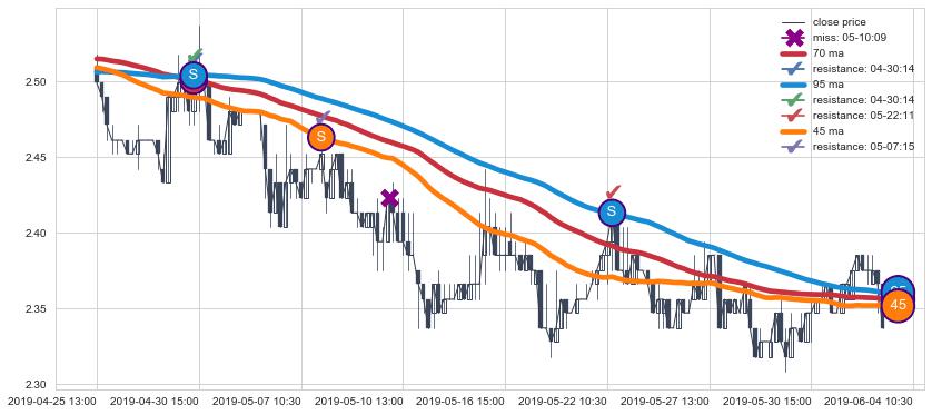 04-25 13:00至06-04 10:30 慢线与快线呈空头排列, 慢线与快线接触少,无缠绕