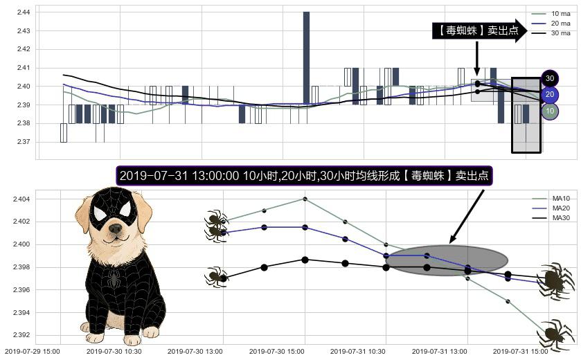 ⚀ 2019-07-31 13:00:00小时显现 10小时-20小时-30小时均线 【毒蜘蛛】卖出点 看空信号,后市看跌,卖出