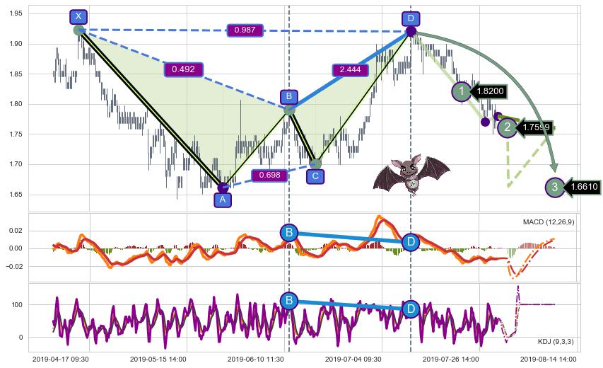 ➣ 已完成【蝙蝠】形态起点X: 04-15:10, 终点D: 07-11:09, 共342交易小时