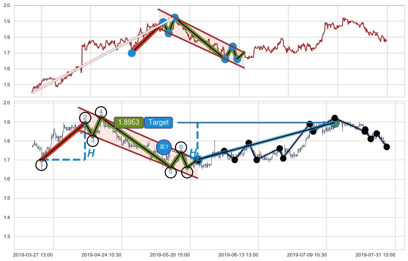 ➢ 07-23:14到达第❶价格目标位置1.8200