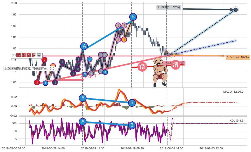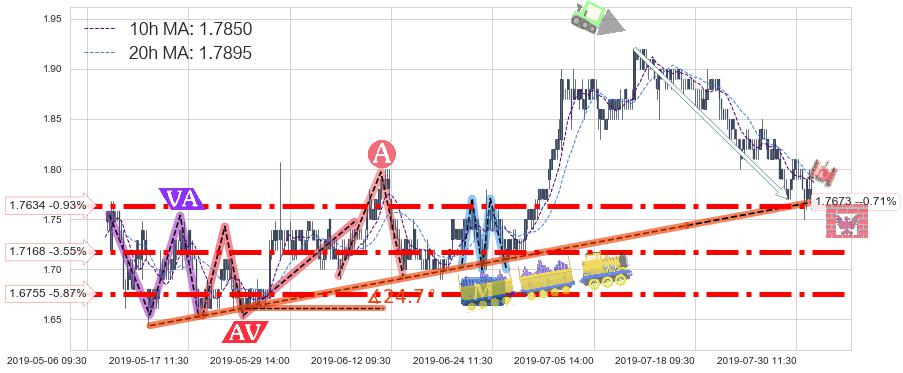 ➢ 预测:2019-08-02 11:00,【小幅回撤】稳定目前上涨趋势的前提下,预测价格:1.7703