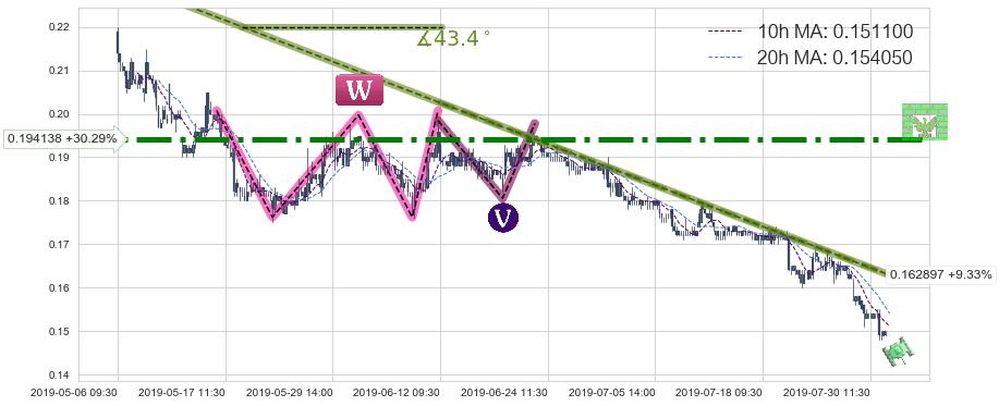 ➣ 预测:2019-08-14 10:00,【继续下探】稳定目前下跌趋势的前提下,预测价格:0.142752