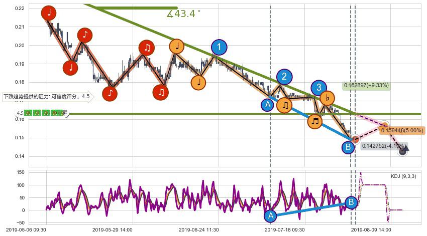 ➢ 预测:2019-08-08 13:00,【小幅反弹】稳定目前下跌趋势的前提下,预测价格:0.156448