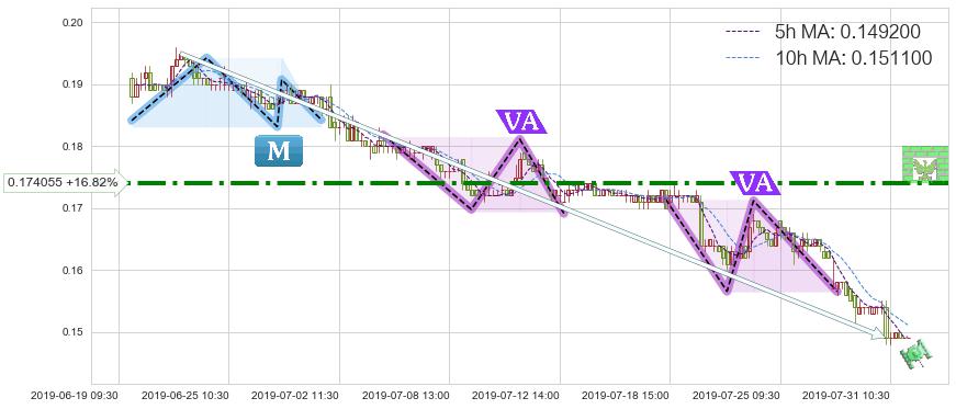 2019-07-15: 第一阻力位0.174055强力阻拦了上升趋势,成功阻止了价格的继续上涨。