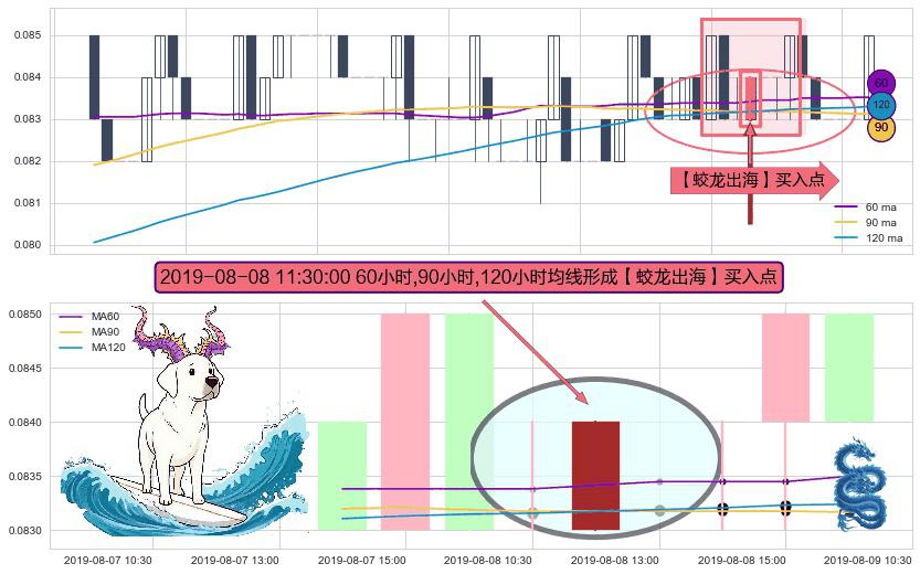 形态多维评估: ⚀ 2019-08-08 11:30:00小时显现 60小时-90小时-120小时均线 【蛟龙出海】买入点 看多信号,后市看涨,买入