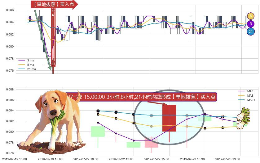 形态多维评估: ⚀ 2019-07-22 15:00:00小时显现 3小时-8小时-21小时均线 【旱地拔葱】买入点 看多信号,后市看涨,买入