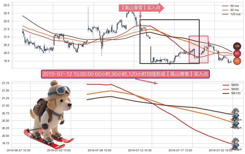 形态多维评估: ⚀ 2019-07-04 15:00:00小时-2019-07-22 15:00:00小时显现 60小时-90小时-120小时均线 【高山滑雪】买入点 看多信号,后市看涨,买入