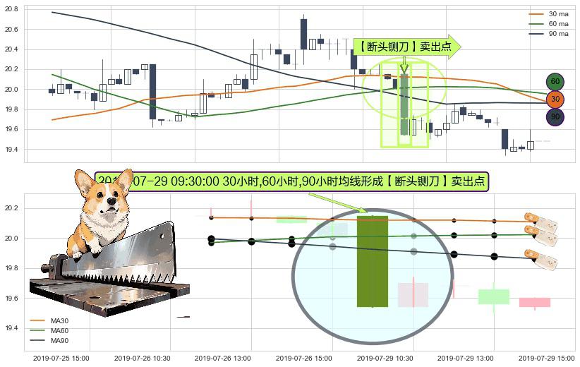 形态多维评估: ⚀ 2019-07-29 09:30:00小时显现 30小时-60小时-90小时均线 【断头铡刀】卖出点 看空信号,后市看跌,卖出