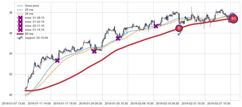 上涨趋势01-07 13:00-02-27 10:30,均线85确认关键支撑1处