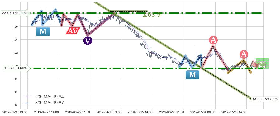 ♞ 20小时均线:19.64,30小时均线:19.87→ 快线<慢线