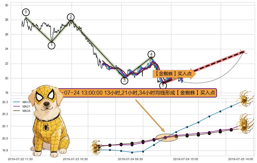 从2019-06-21 15:00至2019-07-12 14:00,共包含84个小时,阶段股价下跌-4.21%,阶段股价变动位移路程比: 1 : 12
