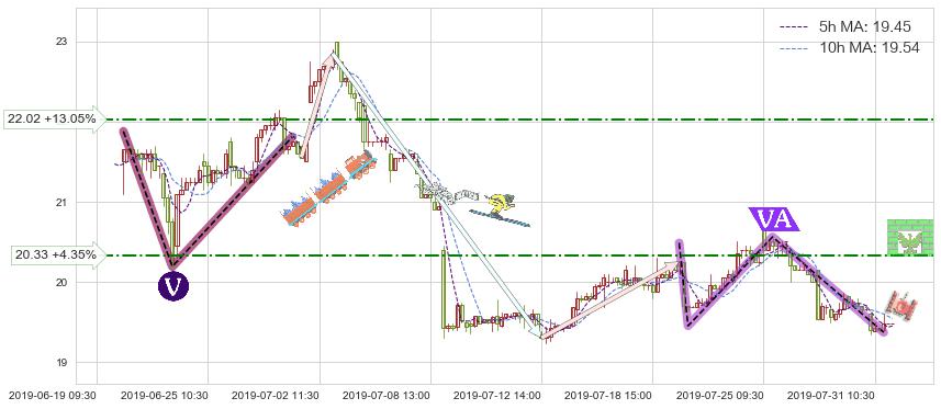 ♘ 阻力价格位20.33,可信任强度51.57%,距离最后交易2019-07-31 15:00形成的收盘价格19.48相差 +4.35%