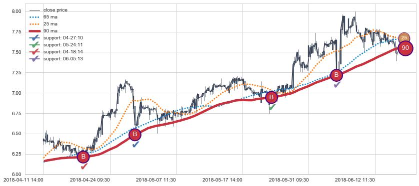 上涨趋势04-11 14:00-06-15 10:30,均线90确认关键支撑4处