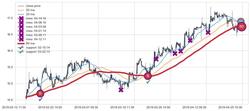上涨趋势02-12 11:30-04-25 10:30,均线80确认关键支撑2处
