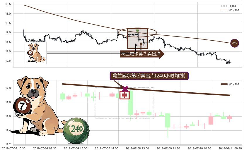 形态多维评估: ⚀ 2019-07-05 15:00:00-小时显现 葛兰威尔均线 240小时均线 第⑦卖出点 下降趋势的中继信号,后市看跌,卖出信号