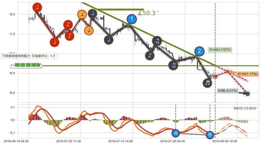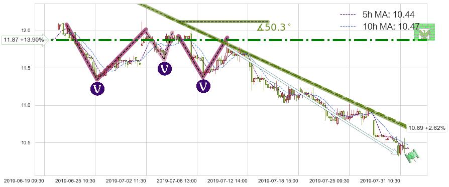 ➣ 预测:2019-08-08 10:00,【继续下探】稳定目前下跌趋势的前提下,预测价格:9.98