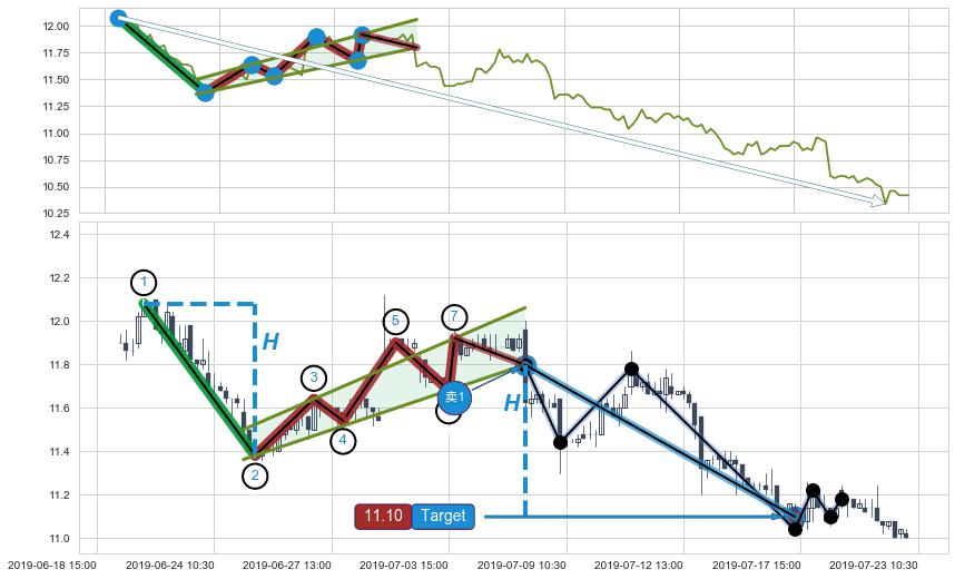 ➣ 最小中继整理跌幅→𝐇: 0.7000 (𝐇旗杆的长度:旗杆起点→顶点)