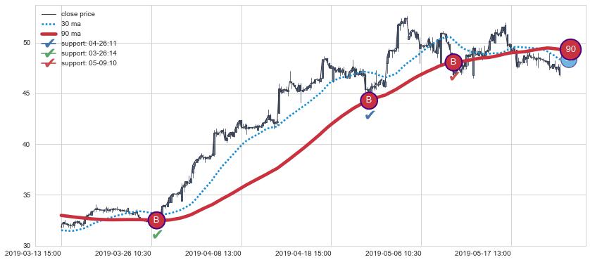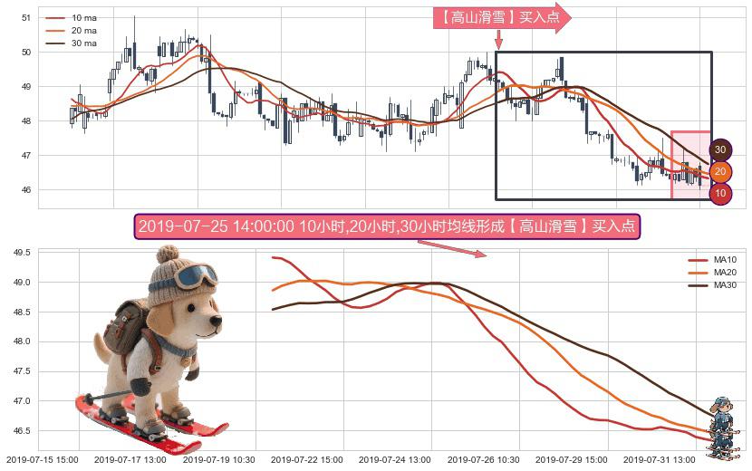 ⚀ 2019-07-19 13:00:00小时-2019-07-31 15:00:00小时显现 10小时-20小时-30小时均线 【高山滑雪】买入点 看多信号,后市看涨,买入