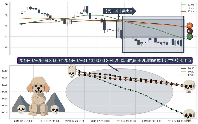⚀ 2019-07-26 10:30:00-小时至2019-07-31 13:00:00-小时显现 30小时-60小时-90小时均线 【死亡谷】卖出点 看空信号,后市看跌,卖出