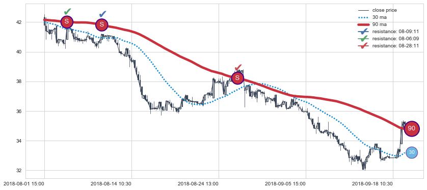⚅ 短期均线MA30下穿中期均线MA90形成的交叉是标准 死亡交叉