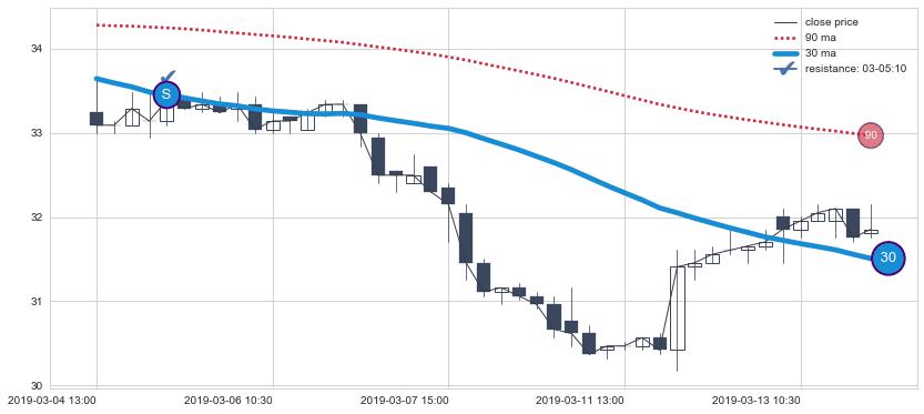⚂ 2019-07-04 09:30:00小时突然冒出一根大阴线,一下子下穿三条均线且收盘价收在各条均线之下
