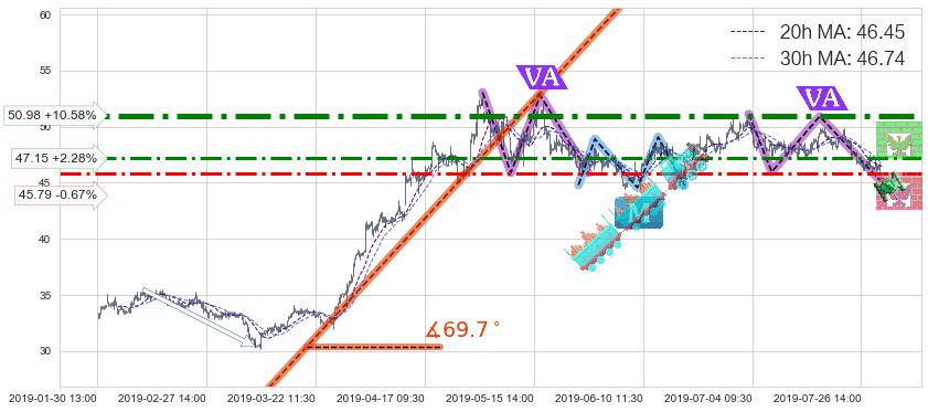 ♘ 阻力价格位47.15,可信任强度68.29%,距离最后交易2019-07-31 15:00形成的收盘价格46.10相差 +2.28%