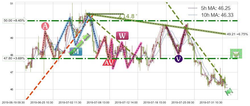 ♘ 阻力价格位47.80,可信任强度83.01%,距离最后交易2019-07-31 15:00形成的收盘价格46.10相差 +3.69%