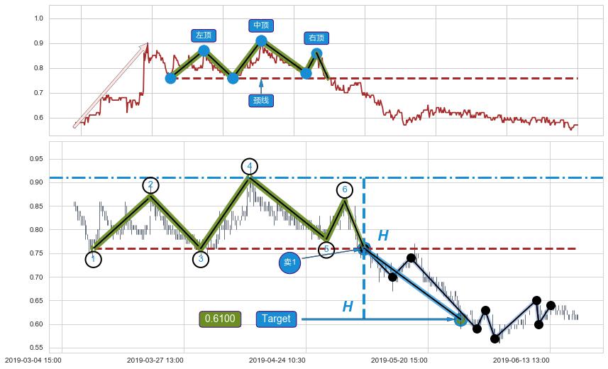 ➣ 【已确认突破】三重顶 起点:02-25:09,突破点:05-07:10,形态共284交易小时