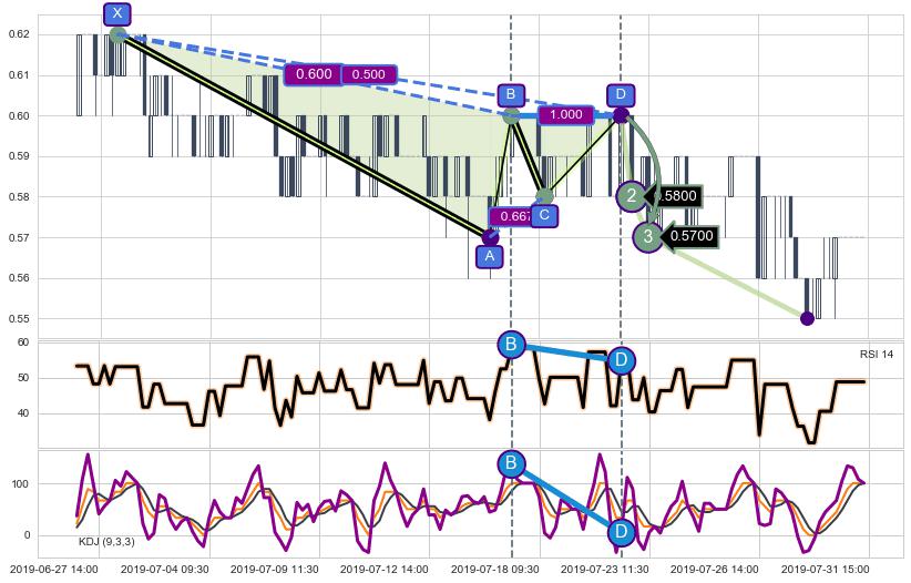 ➣ 已完成【伽利】形态起点X: 06-28:10, 终点D: 07-22:13, 共93交易小时