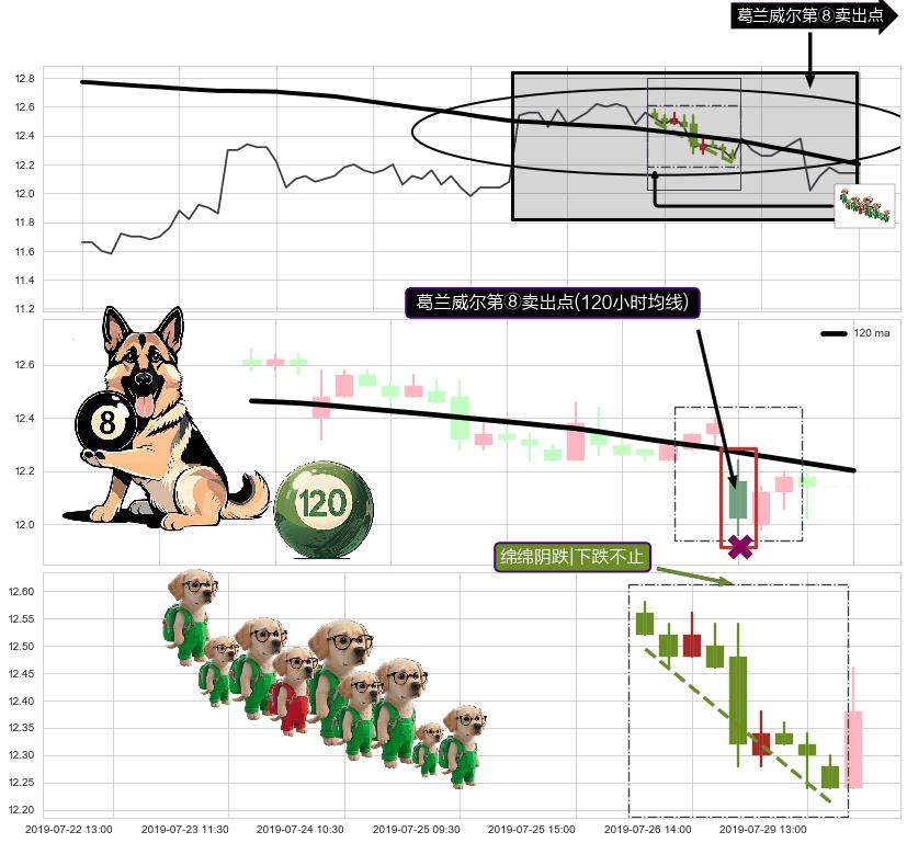 从2019-07-25 11:30至2019-07-31 15:00,共包含28个小时,阶段股价下跌-3.80%,阶段股价变动位移路程比: 1 : 3